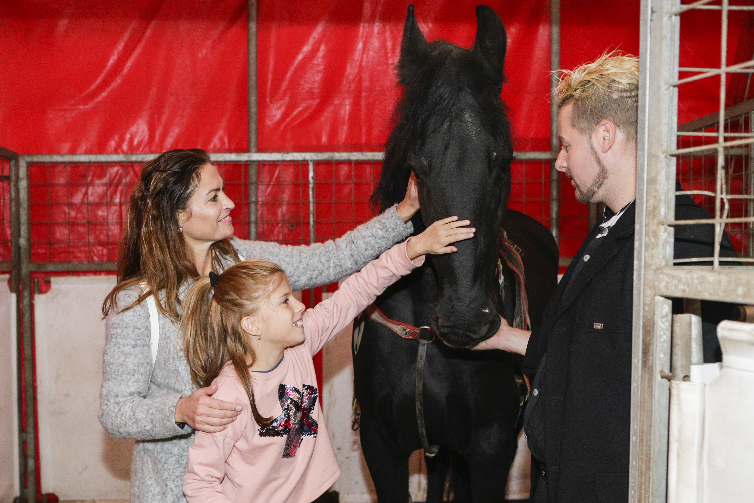 Dospělí i děti měli možnost si před cirkusovým představením prohlédnout zvířecí park. K takovému dvousetpadesátikilovémutygru se sice nikdo nelísal, ale koně, lamy či krokodýla si každý pohladil docela rád. Zpěvačka Michaela Gemrotová si do cirkusu přivedla svoji sestru i s dětmi.