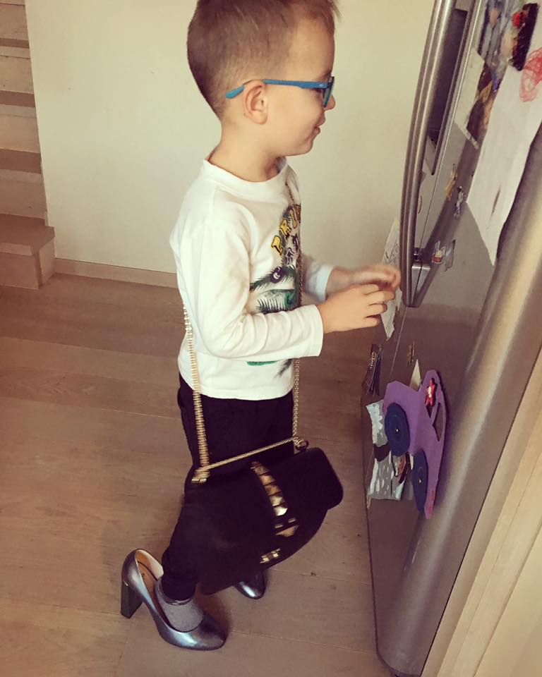 Vypadá to dost zajímavě, když takový klučík si vezme lodičky na podpatku a jednu z hodně drahých kabelek své mámy, která si na nich a botách hodně zakládá. Ale synkovi v tom nebrání, naopak jí to přijde hezké, že si doma zkouší, jaké je Simonino zaměnstnání a jaké je to chodit na šteklích. Naštěstí Brunko v tom nemusel být celý den jako máma, která už radši nosí tenisky, protože z lodiček má zničené nohy.
