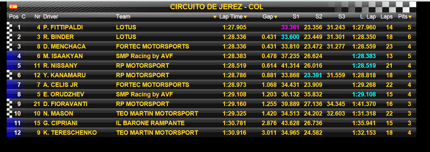 Nový „parťák“ mu evidentně svědčí. V pátečním volném tréninku na další díl seriálu ve španělském Jerezu totiž dojel na prvním místě. Majitele stáje Lotus navíc může těšit i fakt, že hned za ním se umístil jeho stájový kolega René Binder. Rakouský jezdec se bude snažit navázat na parádní výsledky z předešlého podniku v Monze. Naopak Fittipaldi tam zdaleka nezajel podle představ i kvůli technickým problémům. „Těším se, že se zase dostanu na pódium. V Itálii to nevyšlo, o to větší mám motivaci.“ Samotné závody můžete sledovat živě na youtube.