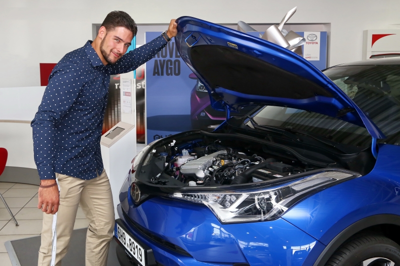 Jirka Kmoníček si prohlížel svoji novou, modrou Toyota C-HR 1.2 Turbo 85 kW s bílým polepem Muž roku 2018 a tvářil se spokojeně. Od vedoucího prodeje Autostylu Trutnov Juraje Sucháně dostal hodinovou „nalejvárnu“ a už mohl frčet. Uloví krasavec roku, který je momentálně single, na nové auto i nějakou novou kočku? „No to nevím. Stopařky moc neberu a balit holky na auta, z toho už jsem vyrostl. A co by to bylo za přítelkyni, kdybych ji ulovil na auto a ne na sebe,“ smál se Jirka.