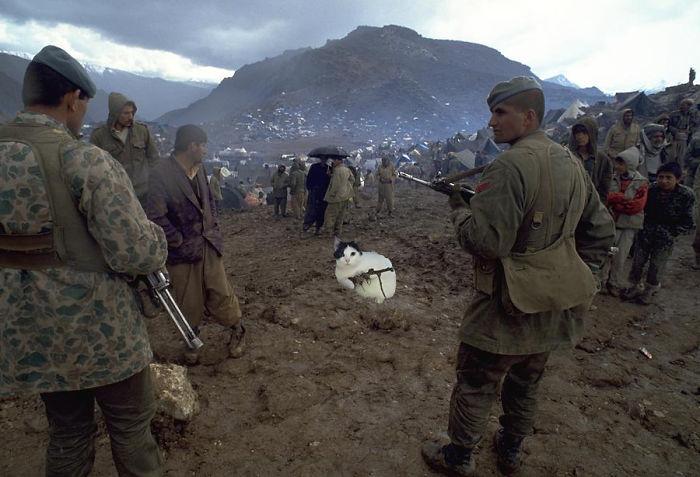 A grafik vtipálek nelenil a okamžitě zvířátko namontoal do různých tématických fotografií. Do prostředí, do kterého tahle kočka odstřelovačka dobře zapadá.