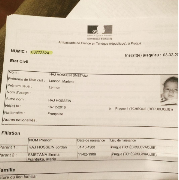 Aby toho nebylo málo, tak se Emma na svém instagramovém profilu pochlubila osobním dokumentem své dcery. Tam stojí, že bude mít jednou v občanském průkazu ještě delší jméno. Bude se totiž jmenovat Lennon Marlene Haj Hossein Smetana. No, snad už tahle rodinka s prodlužováním jména dcerky skončila…