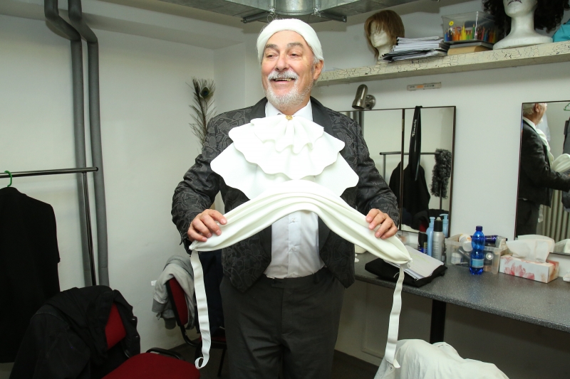 Ovšem včerejšek byl obohacen ještě o jednu kratochvíli. Herci se poprvé oblékli do kostýmů, udělali si malou módní přehlídku a samozřejmě v atraktivním oblečení pokračovali ve zkoušení. Hodně apartní obleček byl vytvořen pro Harpagona, hlavní postavu inscenace, kterého ztvárňuje Milan Enčev.