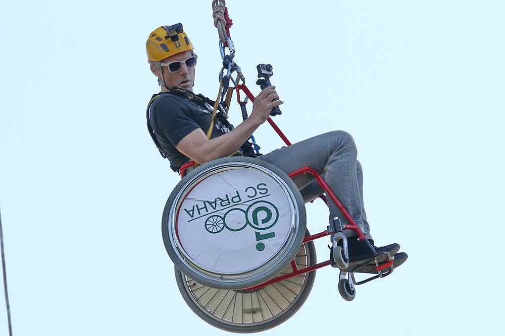 Zpěvák JANEK LEDECKÝ (53) projevil kus odvahy, když se na invalidním vozíku nechal spustit z Nuselského mostu. Z výšky padesáti metrů slanil o víkendu do pražského parku Folimanka, kde probíhal festival Pojď dál – akce skupiny The Tap Tap z Jedličkova ústavu.