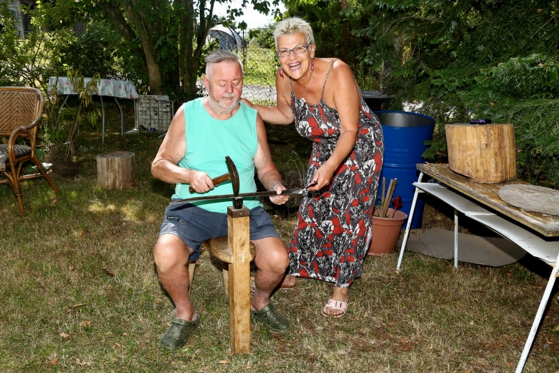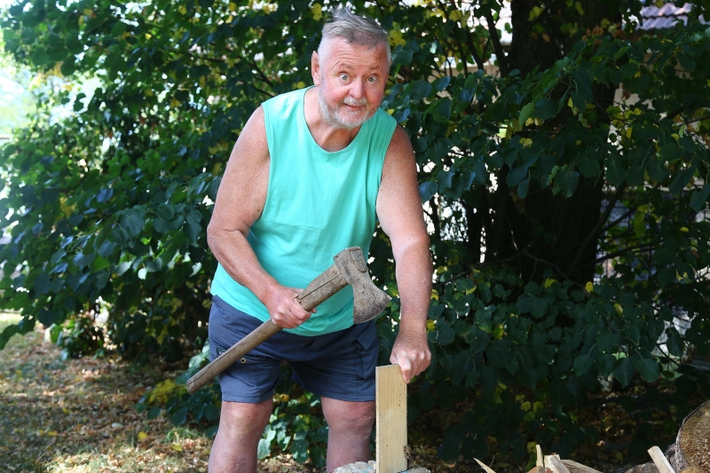 „Jsem takový brouk Pytlík práce všeho druhu, takže zvládám pokosit zahradu, občas uvařím, naštípu dříví a zdatně zvládám i řadu dalších činností,“ vysvětlil nám a aby dodal důrazu svým slovům zasedl a za asistence manželky a souseda se pustil do naklepávání zmíněné kosy a pak předvedl i něco ze sekačského umu. Je začátek srpna a malý herec necelé dva měsíce po vážné operaci, kdy mu v nemocnici zprůchodnili tlusté střevo, které bylo na několika místech srostlé a jen minimálně průchodné, opět „skáče přes kaluže“.