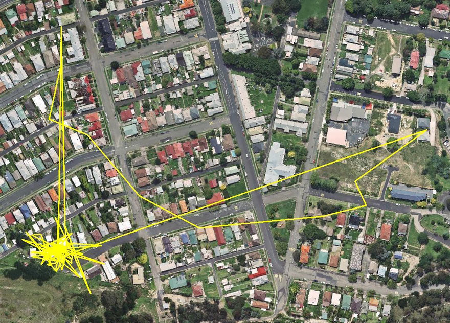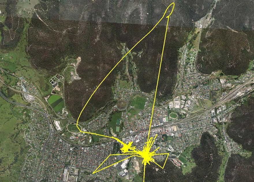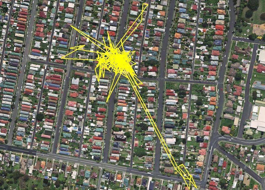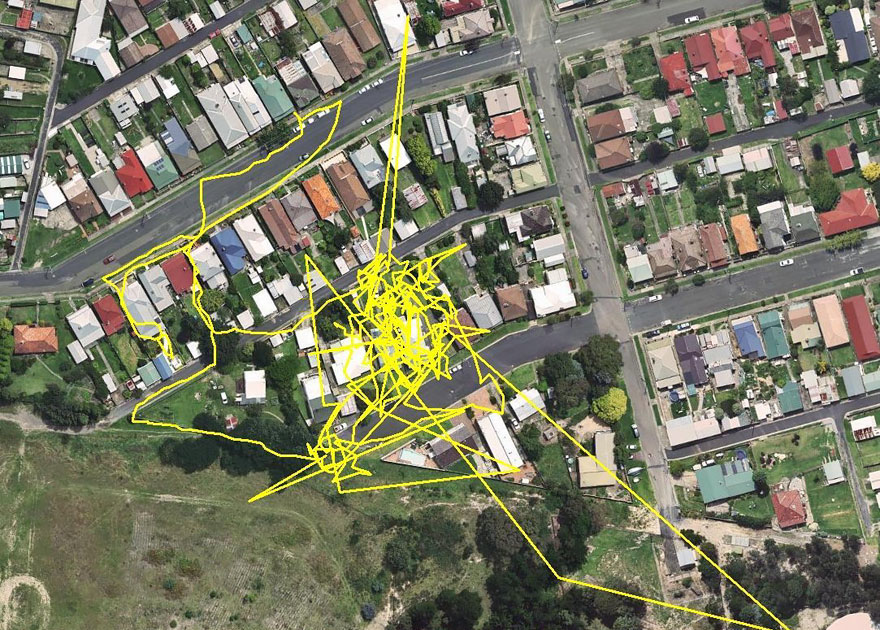 Rozhodl se tedy přidělat jí na krk JPS a zmonitorovat její pohyb. Výsledek byl ohromující. Za jedinou noc naťapala celé kilometry – až za vesnici, co lesů… Mrkněte na její neuvěřitelně spletité trasy!