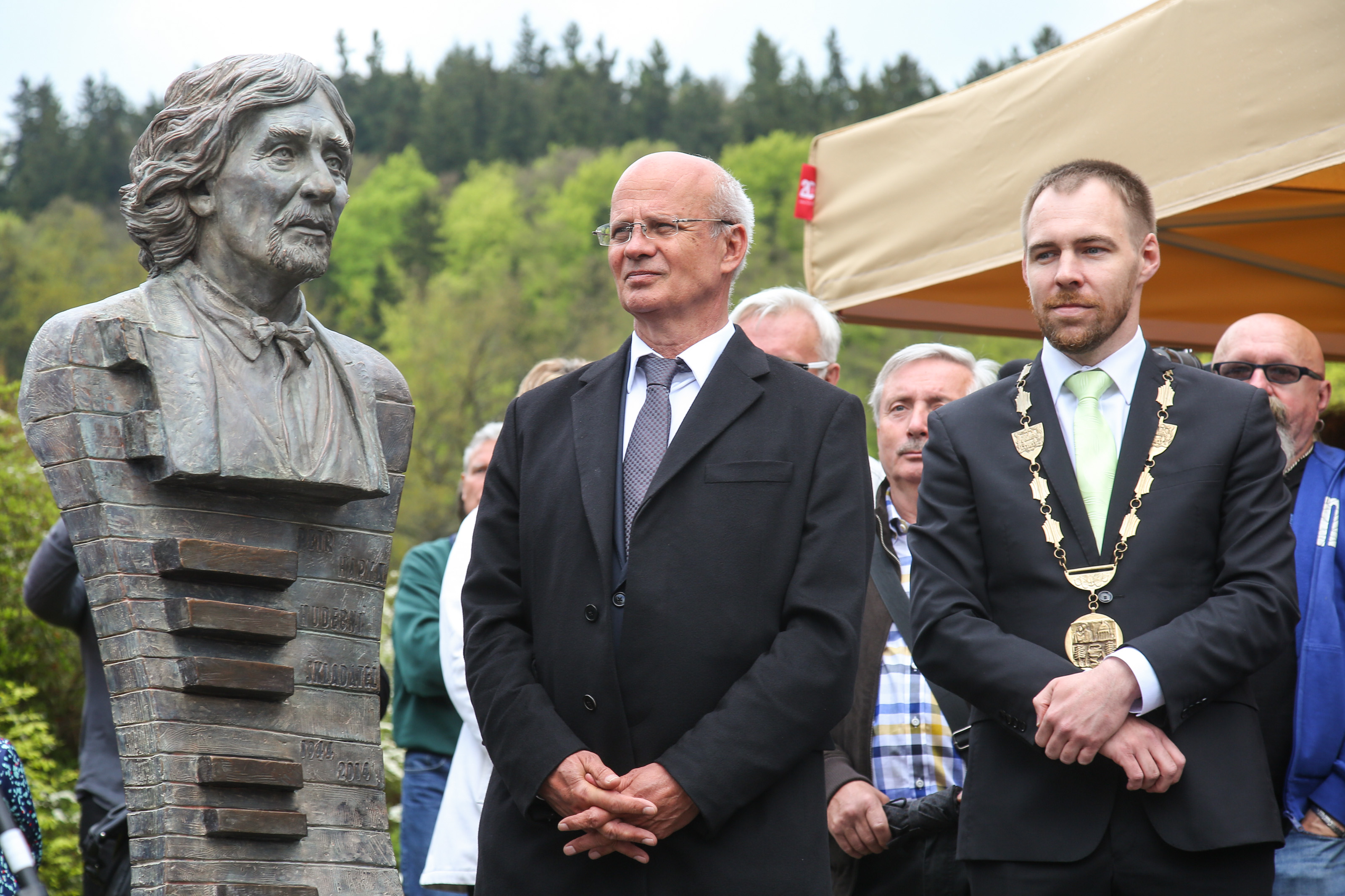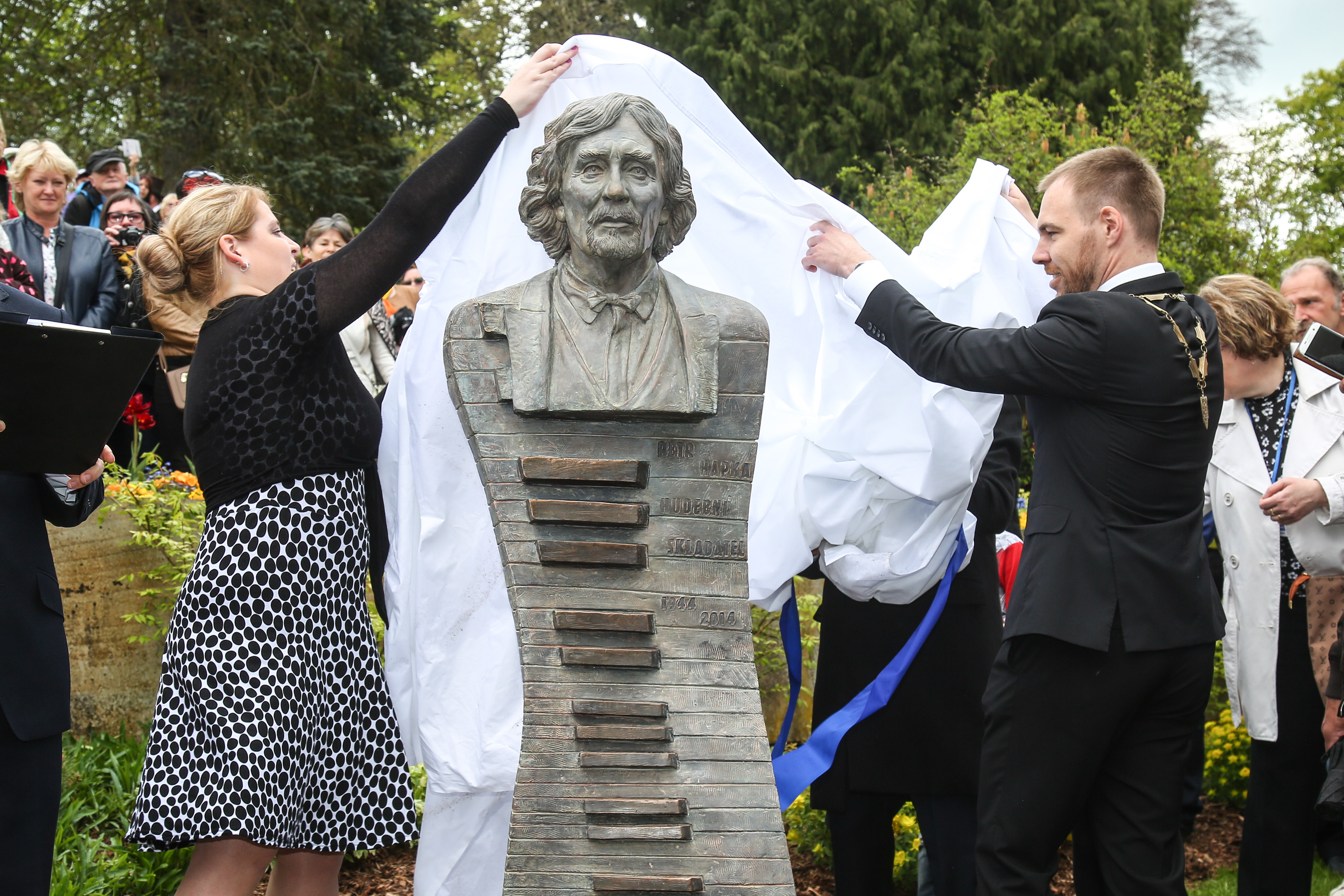 Skladatel, hudebník, zpěvák a dirigent Petr Hapka má svoji sochu. Tedy spíše bystu. Přesně na den jeho nedožitých třiasedmdesátin byla v sobotu (13.5.2017) v poledne slavnostně odhalena v Mariánských lázních, hned vedle Zpívající fontány, tedy v blízkosti kolonády. To mělo samozřejmě svůj důvod.