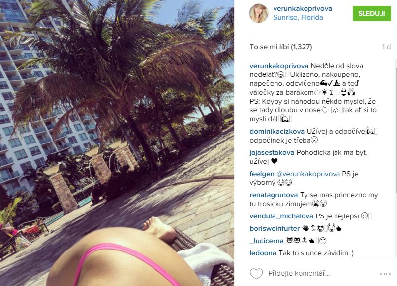 Od té doby, co vyplul na povrch vztah Jaromíra Jágra s neúspěšnou finalistkou České Miss Veronikou Kopřivovou, tak je pod pořádným drobnohledem široké veřejnosti. Všichni sledují, jak se miláčka národa stará. Sice se stále na svém profilu chlubí, jak mu vyvařuje a peče zdravě, aby moc nepřibíral, ale i tak to je málo. Spousta lidí si o ní myslí, že je zlatokopka a ona to stále vyvrací. Teď jí došla trpělivost a napsala na sociální síť, co všechno stihla, než Jarda přijel z „práce“. To by samozřejmě od ní bylo hezké, kdyby si tam k tomu nedala fotku holého zadku, jak se opaluje.