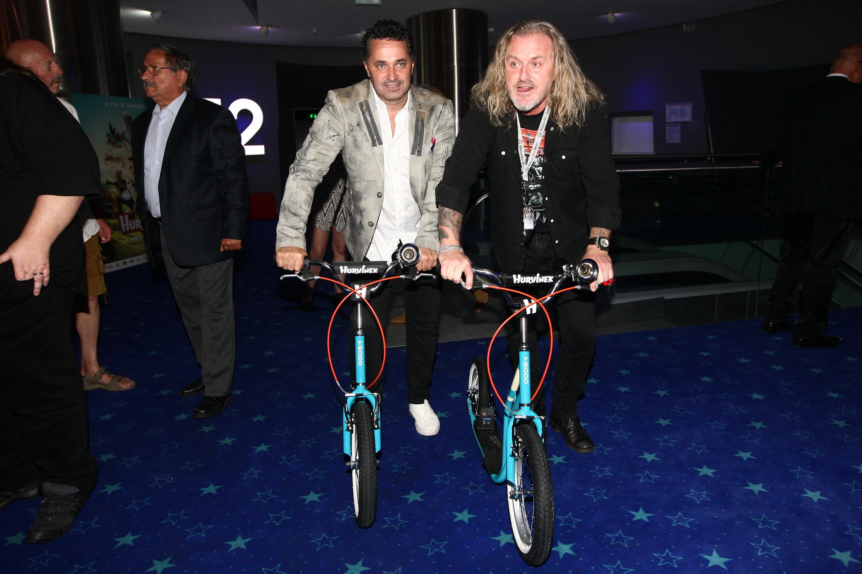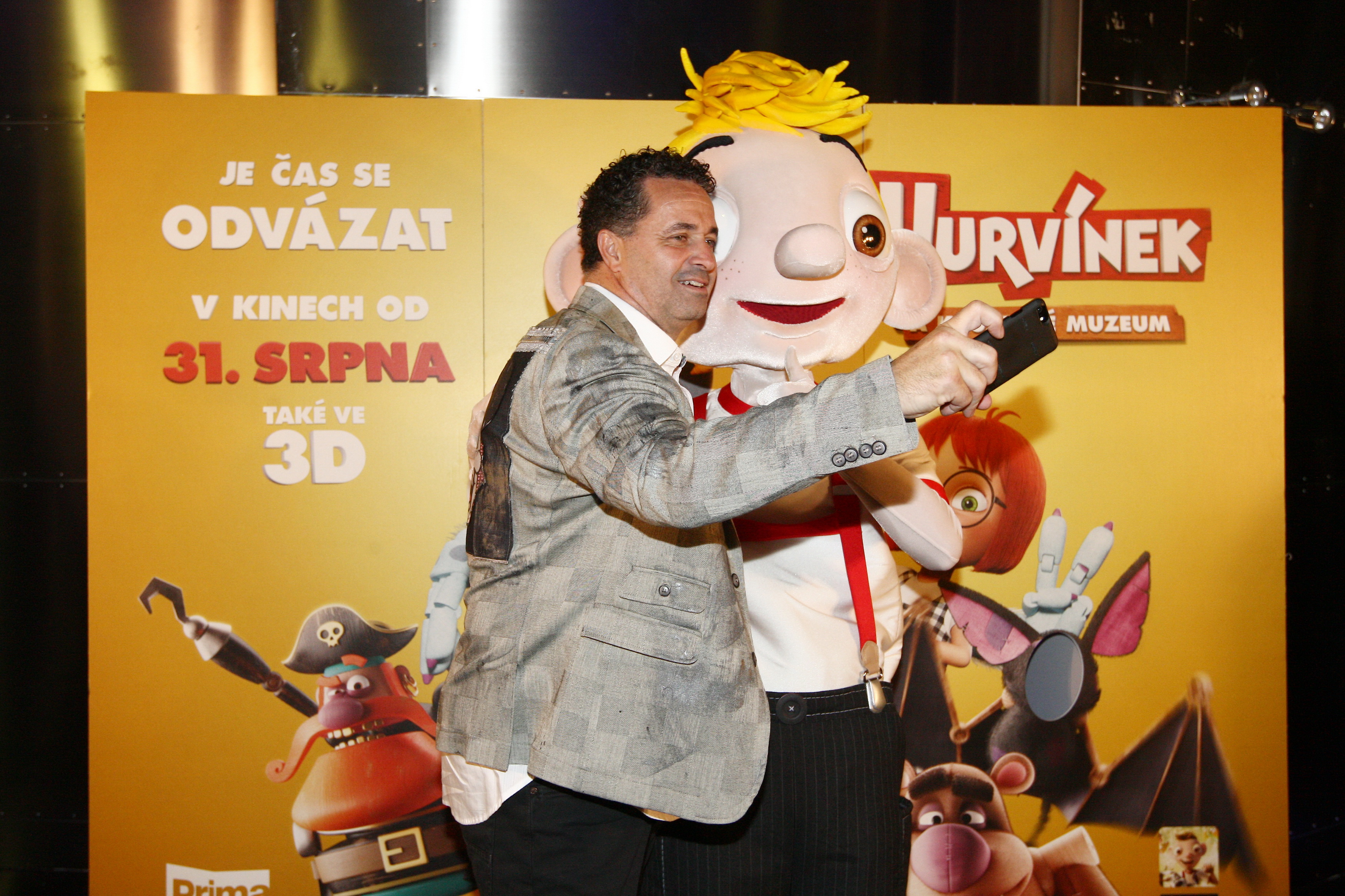 v nadživotní velikosti, věnoval veškerou pozornost jemu. „Víte, je to můj kamarád od dětství, měl jsem a mám rád ty naše dřevěné loutky, a teď i tohohle kresleného klučinu. Já jsem sledovat realizaci filmu po celou tu dlouhou dobu a nám velkou radost, že příběh je na světě a že jsem se na něm mohl podílet,“ uvedl Martin Dejdar a spolu s Pepou Vojtkem si vyzkoušeli i jízdu na tradičním Hurvínkově dopravním prostředku – koloběžce.