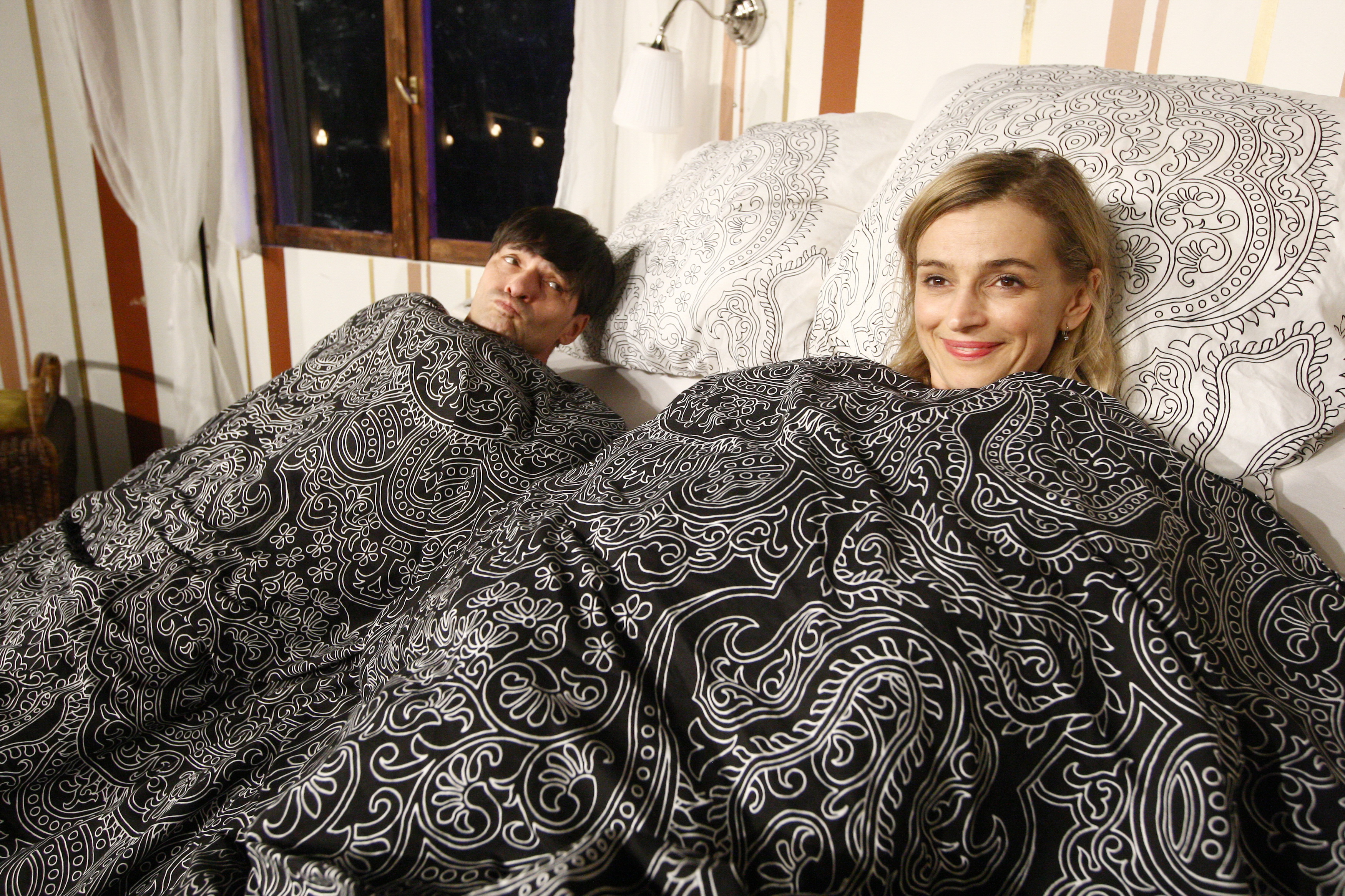 Pak jdou všechna předsevzetí stranou a je-li navíc na blízku postel, je škoda nechat jí prázdnou. A jak naznačují fotografie vodorovná poloha oběma parťákům vyhovuje. „No, je to tak. Ovšem naštěstí jde o roli, takže moje partnerka Veronika nemá důvod žárlit nebo, nedej bože, dělat scény. S Ivou si na jevišti rozumíme, tohle představení nás oba baví, a že skončíme tak, jak skončíme nám předpisuje scénář. A myslím si, že podle ohlasu z hlediště, si tuhle zdařilou komedii užívají i diváci,“ nechal se slyšet po branické premiéře inscenace Hledání ztraceného ráje, autora a režiséra Vlastimila Venclíka, Zdeněk Podhůrský.