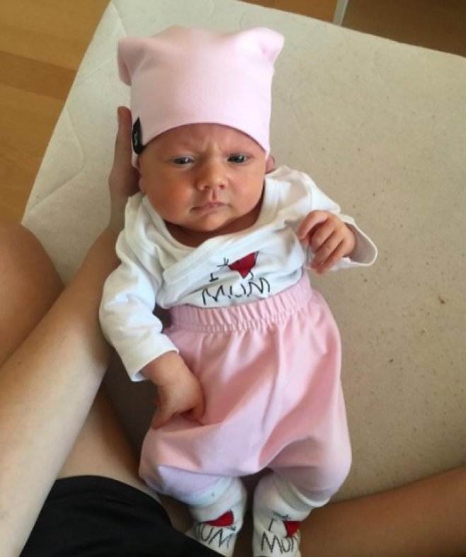 Hrdá Terka neustále svou malou ratolest fotí a vypadá to, že i když sice asi jen těžko ví, co se zrovna děje, tak umí tak rozkošně zapózovat, že u toho jedno oko nezůstane suché. Prostě rozená královna krásy, které pozornost dělá jen a jen dobře.