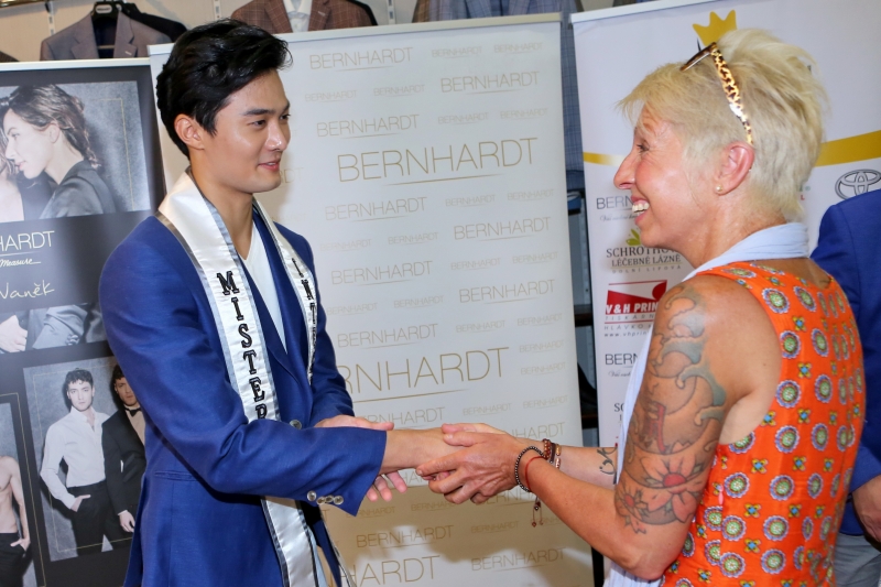 Mr. International 2017 Seung Hwan Lee si se zájmem prohlédl vystavené obleky v prodejně Bernhard v pražské pasáži Černá růže a dokonce si ozkoušel některé modely. „Do Prahy jsem se těšil, hodně jsem o tomto městě slyšel. Byl jsem také zvědavý na pánskou módu a tady v krejčovství Bernahrdt bych si určitě vybral.“