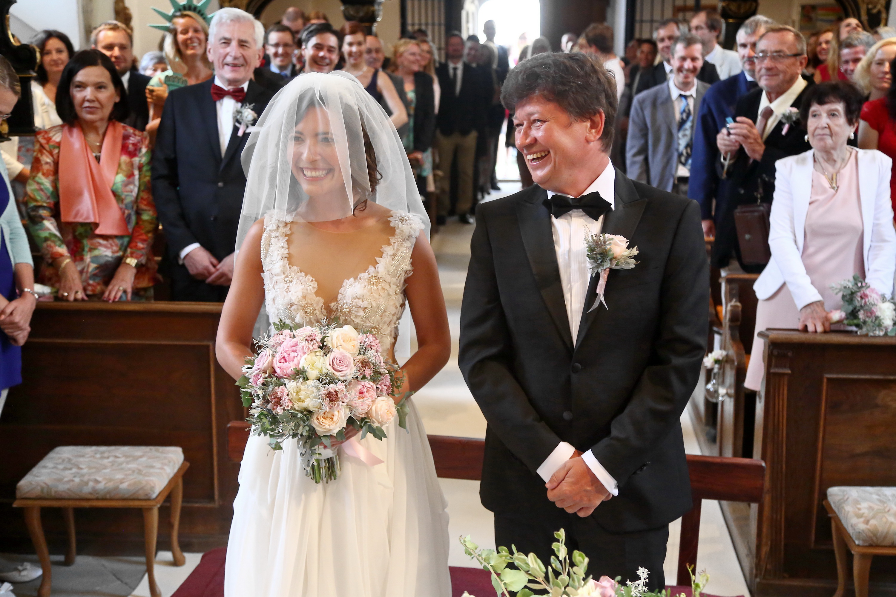 Hostů se před kostelem Nanebevzetí Panny Marie v Horních Počernicích sešlo nadmíru. Nechyběli mezi nimi například herečky Anička Kulovaná a Petra Špindlerova, nebo herec Rudolf Hrušínsky mladší, či Martin Pisařík. Úderem dvanácté hodiny se do práce pustil pan farář a za několik chvil již novomanželé Janákovi přijímali gratulace.