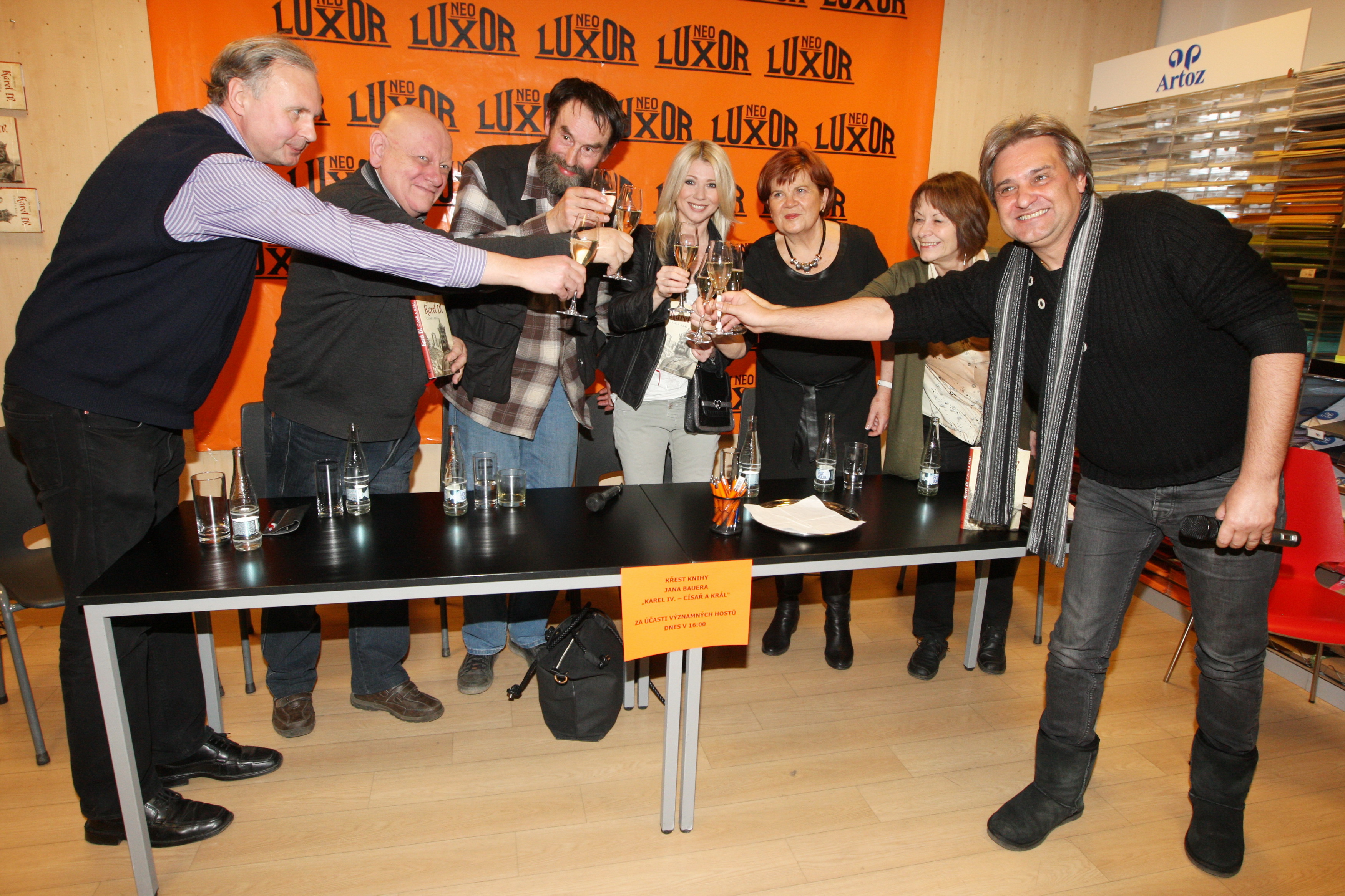 „Berete nám všechny iluze, moc se mi to nelíbí, buďme pozitivní,“ bránila naopak Zuzana Baudyšová velikána české historie. A protože Karel IV. je pro všechny srdeční záležitost, moderátor křtu Slávek Boura ukončil debatu a přípitkem všichni svorně popřáli knize spoustu spokojených čtenářů.