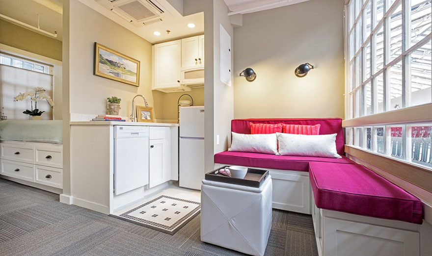 Jedním slovem nádhera! Je bydlení, jaké vytvořili ze starého obchoďáku v Rhode Islandu v oblasti Nové Anglie. A přitom – kdo by to byl řekl. Když se podíváte na obrázek ze starých časů – prostory  vypadaly dost neutěšeně.
