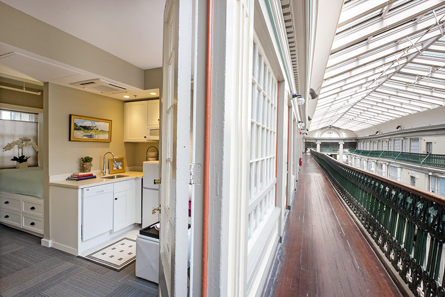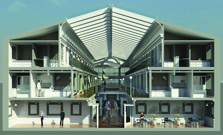 Asi by vás nenapadlo, že z toho může jednou být luxusní obytný komplex. Ale stalo se. Uvnitř vznikla řada nádherných bytů, které mají zvláštní kouzlo v tom, že když vyjdete ven, nikdy na vás neprší. Ačkoli si připadáte jako na ulici, celé je to pod střechou. To je pohádka!