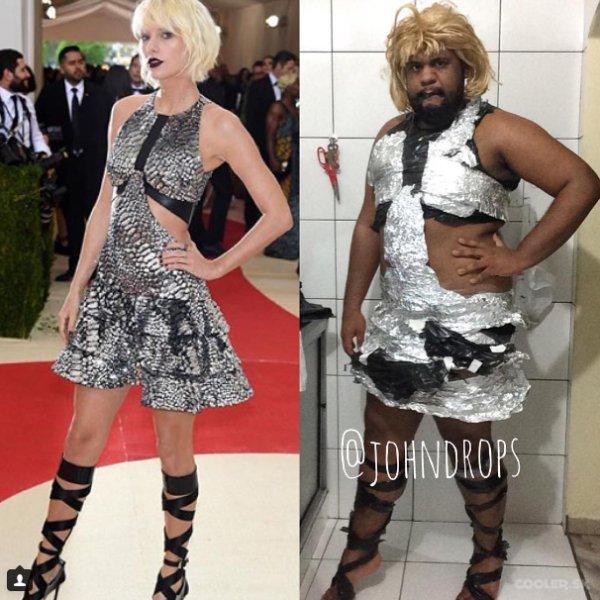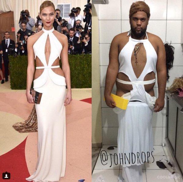 Tenhle týpek je moc! Podívejte, jak napodobuje společenské šaty celebrit!