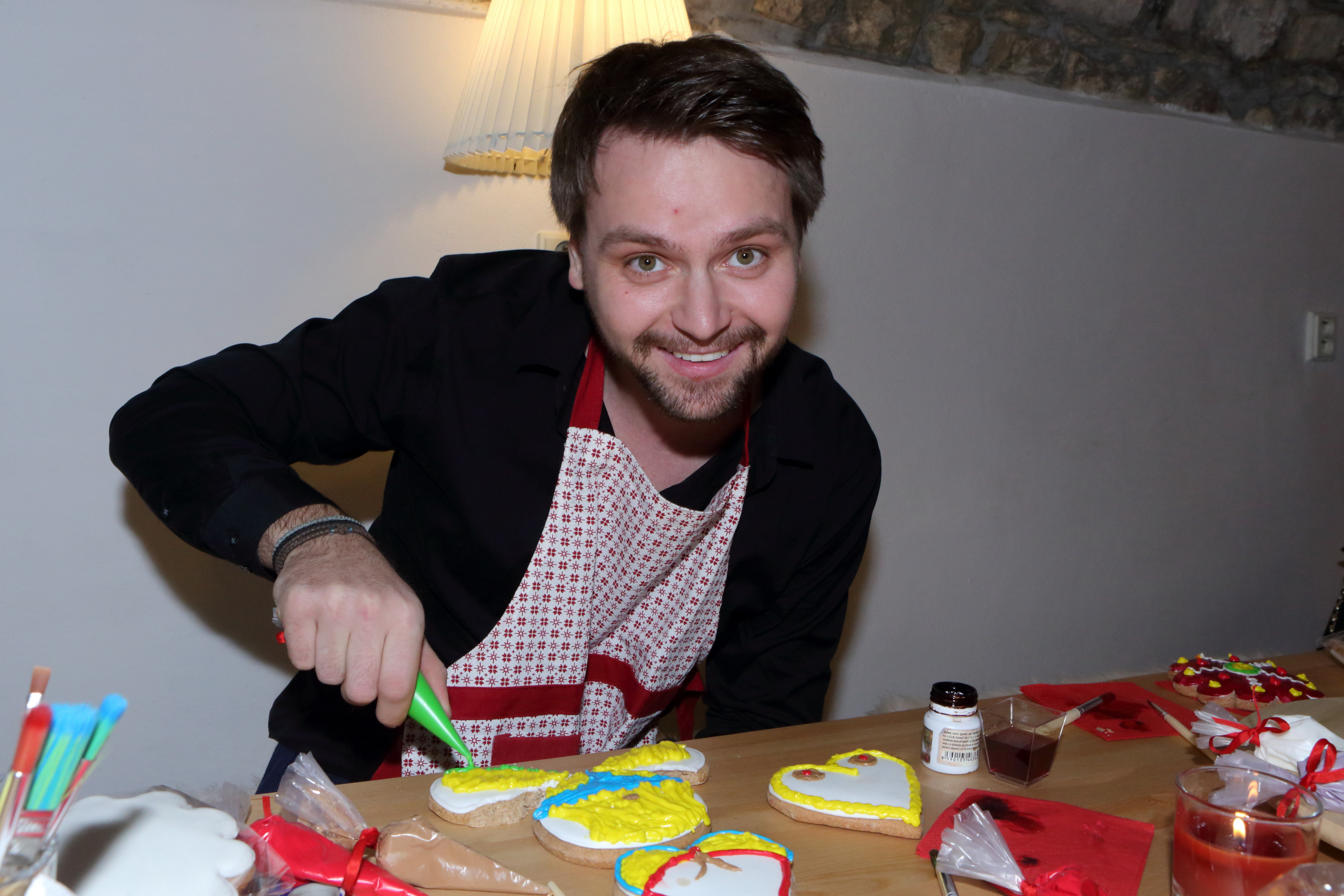 „Přítelkyně je v současné době dost často pryč, tak jsem využil příležitosti a vyrobil si její kopii, abych si jí mohl v době nepřítomnosti připomínat,“ vysvětlil nám v proslulém perníkářství Sweet Prague zpěvák a herec Pepa Vágner, který sem zavítal spolu se svojí tříletou známostí Marlene na akci zdobení Valentýnských perníčků.