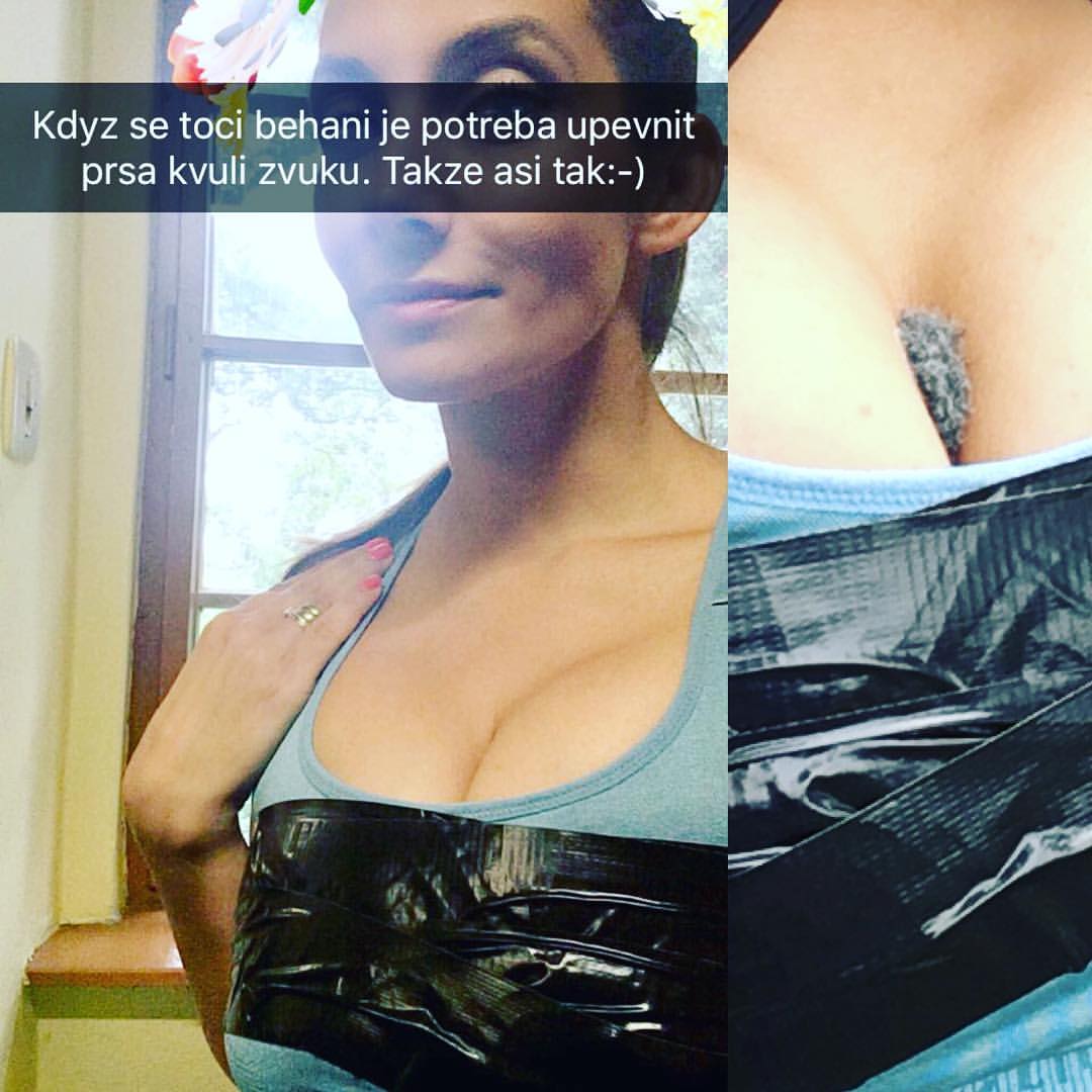 Předvedla prsa obmotaná izolepou. Je tohle normální, nebo jde o nějaké zvláštní sexuální hrátky s manželem Reném? Naštěstí v tom má prsty produkce, která takhle Evičku oblepila, aby se její trojky zbytečně při natáčení nehýbaly a neskákaly do stran.