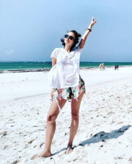 Jelikož je venku hezky, tak já samozřejmě velmi často ukazuje spoře oděnou, díky čemuž může obdivovat její křivky. „Jdu koupit rohlíky a máslo,” vtipně okomentovala snímek, kde je na dovolené v Keni, přičemž samozřejmě jen v plavkách.