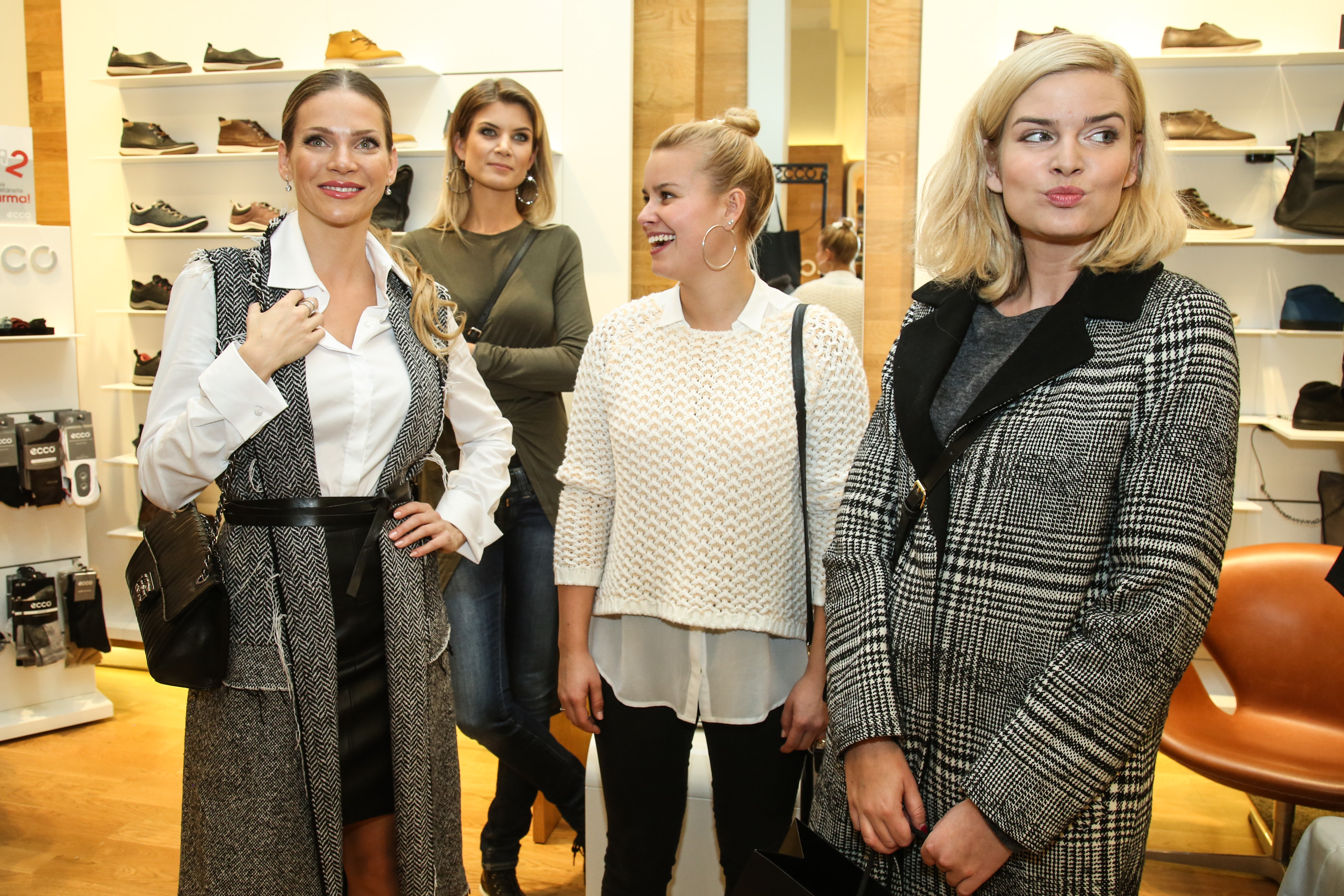 Čtveřice hokejistů, Vladimír Eminger, Michal, Barinka, Brian Ihnačák a Adam Klavík nelenili, když viděli Patricii Solaříkovou a Milušku Bittnerovou zápolit s módními novinkami a aktivně se zapojili do nazouvání na jejich nožky. Dobrá věc se podařila a obě herečky odměnily své „komorníky“ úsměvy. „Po dlouhé době jsem se dostala na nějakou akci. Ne, nepřišla jsem si udělat radost po vyřazení ze StarDance, to už je za mnou, ale prostě jsem vyrazila omrknout, co se nosí. Řadu měsíců jsem neznala nic jiného, než trénink a teď jsem opět ve své živlu. A navíc jsme s Patricií získali i pohledné pomocníky při zkoušení botek, takže u mě naprostá spokojenost,“ vysvětlila Bittnerová a šla si vybrat a otestovat další a další a další obutí.